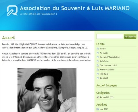 Nous avons la joie d'être membres de l'association du Souvenir de Luis Mariano dirigée avec ferveur et passion par Régis Marquant. Chaque année, plusieurs centaines de passionnés se réunissent à Paris pour une journée autour de notre idole, et peuvent recevoir une revue passionnante garnie de photos et articles rares.